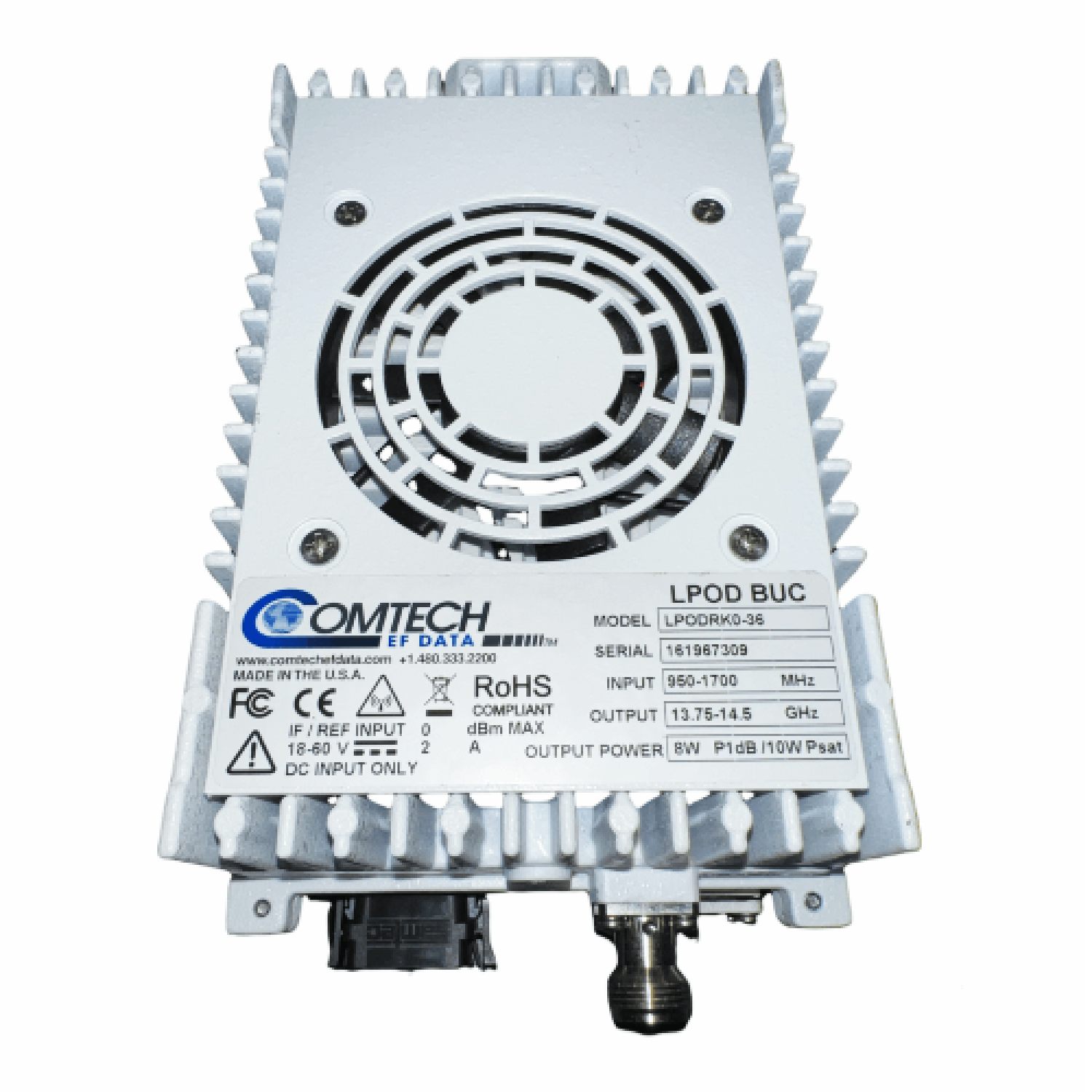 Our LPOD-R family of Outdoor Amplifiers / Block UpConverters (BUCs) deliver rated power, guaranteed, to the transmit waveguide flange at the 1 dB compression point. The LPOD-R is a cost-effective alternative to the LPOD, where the full LPOD’s support of internal 10 MHz and redundancy is not required. There are three LPOD-R package sizes available – PS.5, PS 1 and PS 1.5. Each LPOD-R consists of an SSPA module with the Monitor/Control Processor (MCP), a power supply, and a fan assembly. To ensure the maximum usable output power with stable operation over a wide range of environmental conditions, the units feature a low loss combining technique and MCP-based temperature-versus-gain compensation. The LPOD-R units are compact in size and weight, lending itself to installations with limited available mounting space. Common installations for the LPOD-R are ship-borne antenna systems, small "flyaway” systems, and Satellite News Gathering (SNG) vehicles.